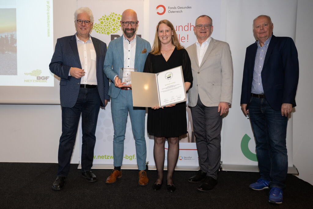 Das BGF Gütesiegel der Österreichischen Gesundheitskasse steht für Unternehmen, die Gesundheit systematisch fördern und nachhaltige Strukturen schaffen. ÖGK Obmann Stv. Andreas Huss MBA, Dr. Klaus Ropin (Leiter des Fonds Gesundes Österreich) und Werner Salzburger, Vorsitzender des ÖGK Landesstellenausschusses, gratulierten den ausgezeichneten Tiroler Betrieben und würdigten ihren kontinuierlichen Einsatz.