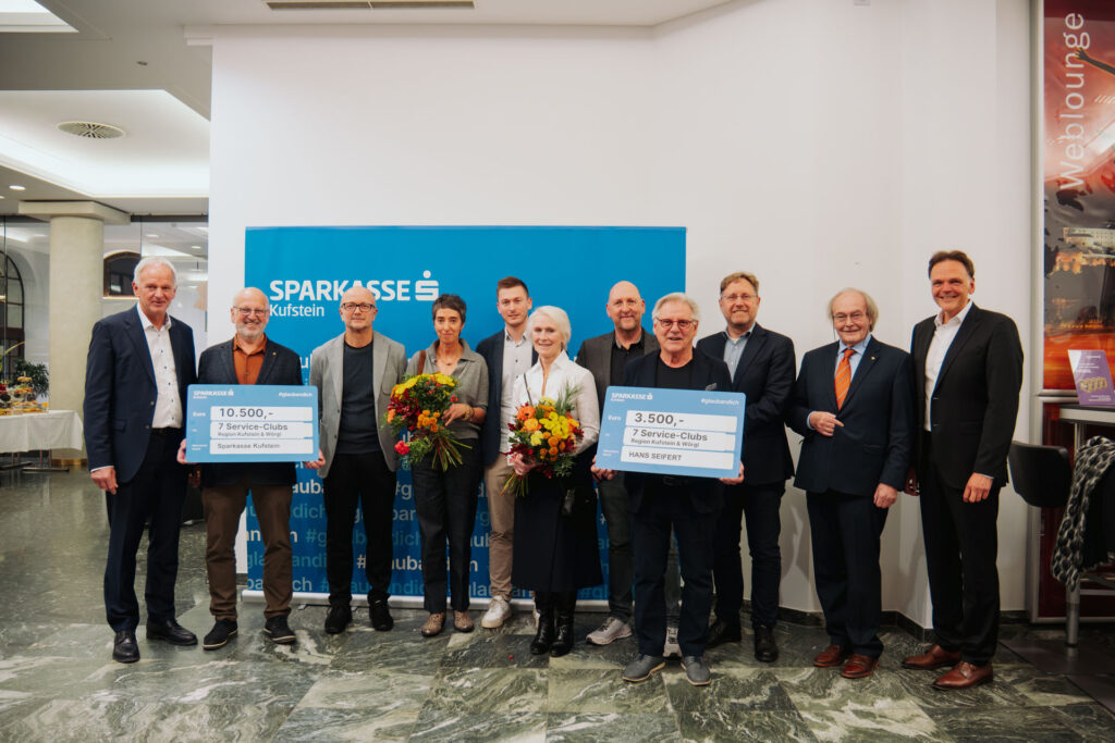 „Kunst und Sozialengagement“ lautete das Motto dieses Abends. Zur Vernissage eingeladen waren deshalb auch zahlreiche Service-Clubs der Region. Die Vorstandsdirektoren Klaus Felderer, Otto Dialer und Sparkassen-Präsident Siegfried Günther überreichten gemeinsam mit dem Künstler Hans Seifert vorweihnachtliche Spenden an die Präsidentinnen und Präsidenten von Soroptimist Kufstein, Lions-Club Kufstein, Lions-Club Wörgl, Kiwanis-Club Kufstein, Rotary-Club Kufstein, Rotary-Club Wörgl-Brixental und Club Round Table. Vorstandsdirektor Klaus Felderer: „Wir wissen euer großartiges Sozialengagement für die unter uns lebenden in Not geratenen Menschen und Familien sehr zu schätzen. Wir freuen und bedanken uns, dass ihr gerade heute am Weltkindertag unserer Einladung so zahlreich gefolgt seid. Unsere Spenden sind bei euch in besten Händen.“